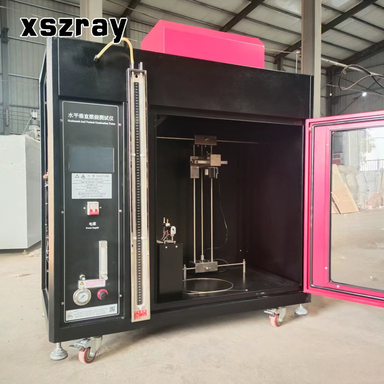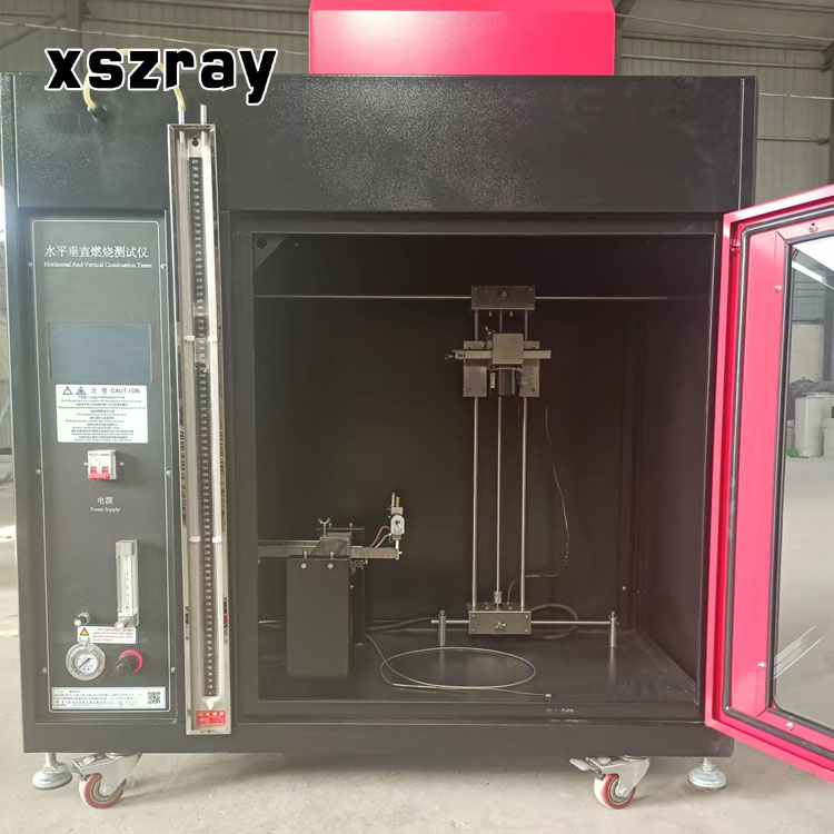 A testing instrument used to test the combustion performance of plastic and non-metallic materials. The laboratory test method for determining the horizontal or vertical combustion performance of plastic and non-metallic material specimens under a 50W flame condition.